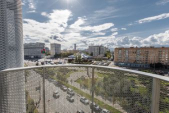 Апартаменты расположены в Даниловском районе, 5 минут пешком до метро Тульская. Из панорамных окон открывается прямой вид на Даниловский рынок, без эффекта окна в окна — редкое преимущество для этого комплекса.