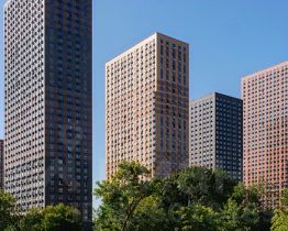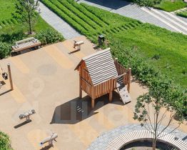 Проект задуман небольшим и уютным - в нём будет всего 4 корпуса с переменной высотой: 28, 33 и 38 этажей с подземным паркингом. Не территории мы построим детский сад на 150 малышей и школу для 350 учеников. А во дворе - зелёный парк с детскими и спортивными площадками и зонами для отдыха. На первых этажах откроются магазины, кафе и другие сервисы.