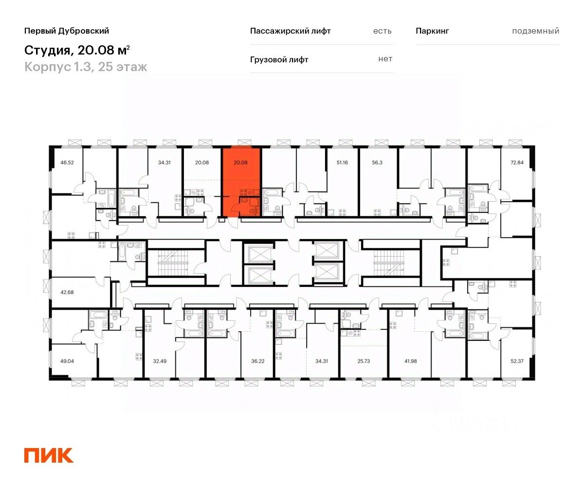 Продаётся квартира-студия площадью 19,5 кв.м на 25 этаже 33 этажного дома (Корпус 1.3, Секция 1) проекта ПИК Первый Дубровский. Светлый просторный подъезд на уровне земли, функциональная планировка, большие окна, c отделкой.