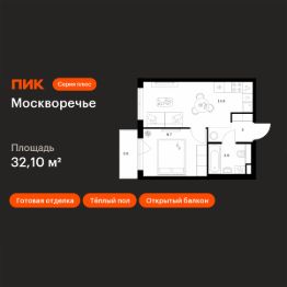 Продаётся 1-комн. квартира площадью 32,1 кв.м на 9 этаже 14 этажного дома (Корпус 2.3, Секция 2) проекта ПИК Москворечье. Светлый просторный подъезд на уровне земли, функциональная планировка, большие окна, c отделкой.