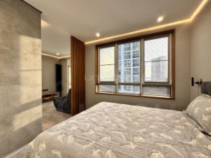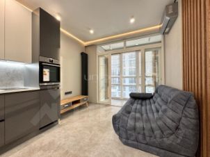 В квартире выполнен современный ремонт. Никто не проживал. Дополнительных вложений не требует. Вся техника и мебель остаются (все новое). Высокие потолки 3 метра. Дорогие и качественные материалы и сантехника.