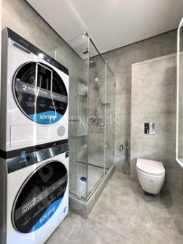 * совмещенный санузел с теплым полом (сантехника Villeroy & Boch, стиральная машина и сушилка Korting);