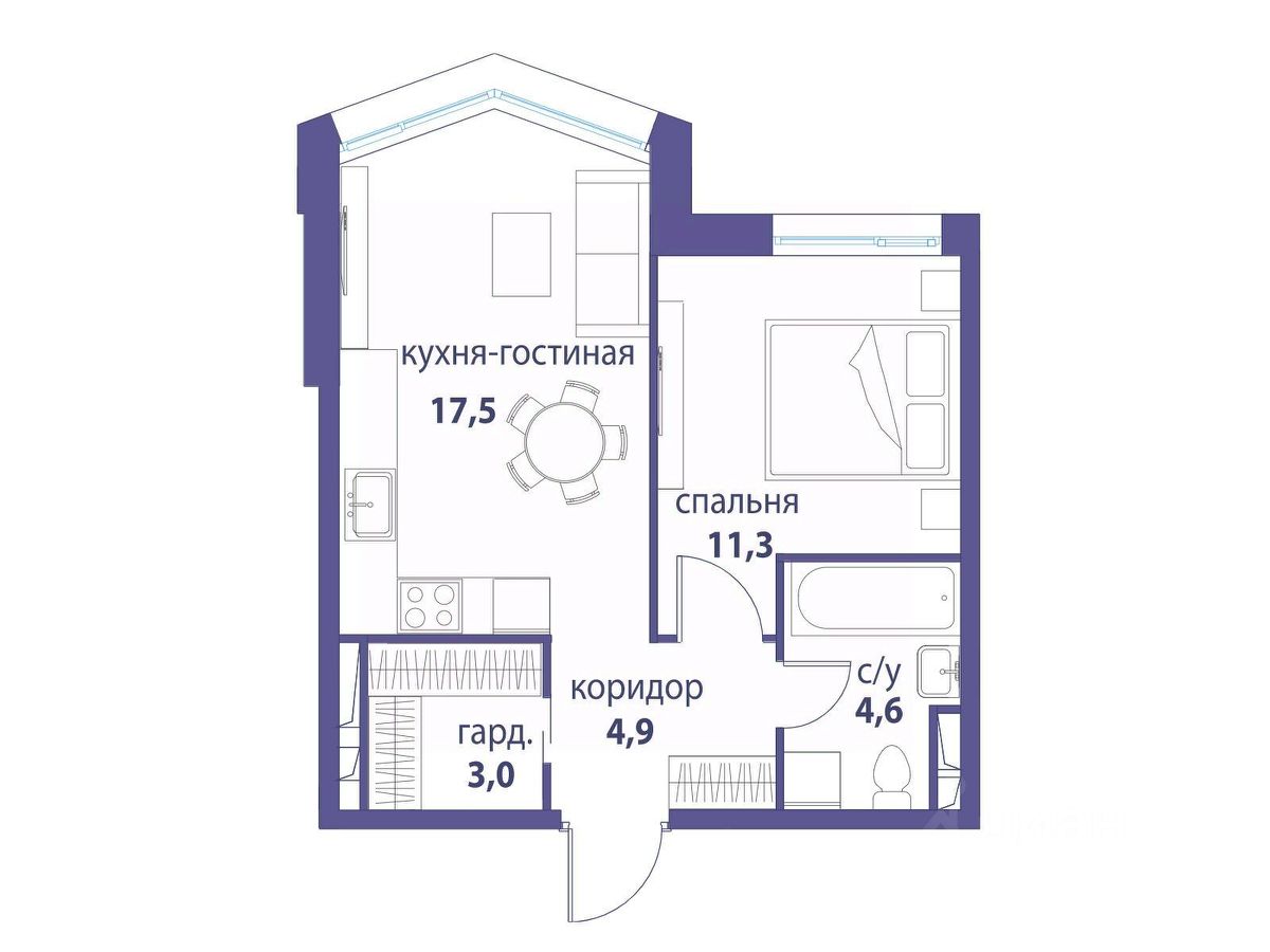 Продается 1-комнатная квартира от застройщика: общая площадь 41.30 м², жилая 11.30 м², кухня 17.50 м², 21-й этаж, жилой квартал "Вдохновение", корпус 31 (секция 3).
