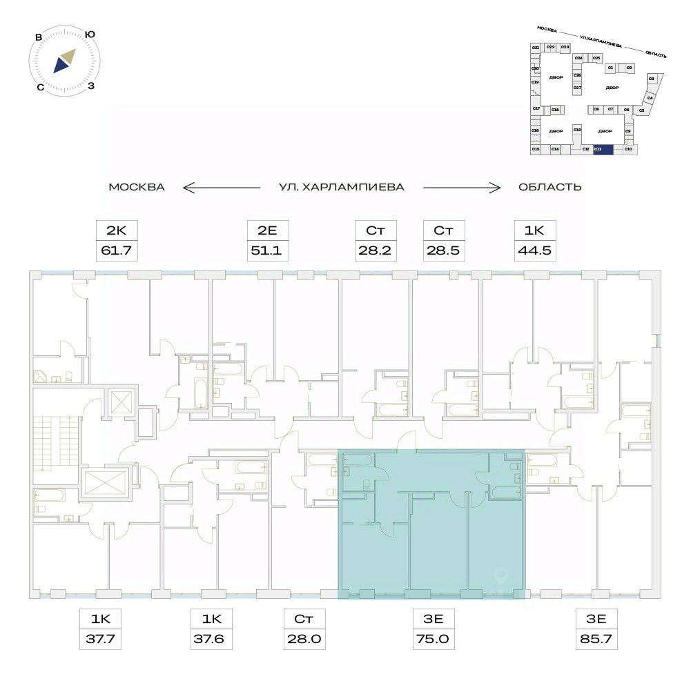 ЖК "Детали" | 3-комнатная квартира, 75.00 м², 4-й этаж.