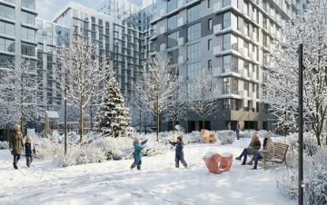 - Безбарьерная среда с многоуровневым ландшафтным парком, детскими площадками, зонами для отдыха и арт-объектами