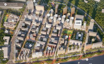 В состав объекта входят пять таунхаусов, 13 детских садов, три школы, галерея магазинов, арт-центр, театры, музейный зал и образовательный центр. В жилом комплексе предусмотрена служба консьержей.