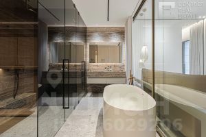 Квартира полностью готова к заселению: выполнен дизайнерский ремонт, мебель и предметы декора от премиальных брендов, полностью оборудованные ванные с качественной сантехникой.