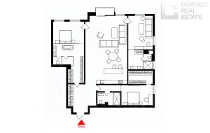 Комфортная планировка предусматривает: гостиную с большим диваном, тв-системой и биокамином, столовой зоной и оборудованной кухней; две мастер-спальни со своими санузлами и гардеробными; третью спальню со своим санузлом; а также удобную большую прихожую.