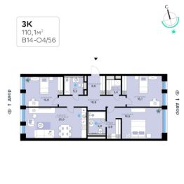В продаже — трехкомнатная квартира, общей площадью 110,1 кв. м. Квартира расположена на восьмом этаже девятиэтажного корпуса Оптимум в квартале В14 нового района СберСити, который строит Сбер.
