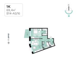 В продаже — однокомнатная квартира с чистовой отделкой, общей площадью 69,4 кв. м. Квартира расположена на пятом этаже тринадцатиэтажного корпуса Адвансд в квартале В14 нового района СберСити, который строит Сбер. Дом расположен на первой береговой линии Москвы-реки.