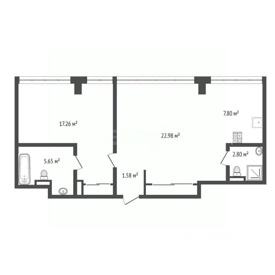 Апартаменты отличаются продуманной планировкой с изолированной спальней и просторной кухней-гостиной. Ключевые преимущества — высокие потолки 4 метра и панорамные окна, наполняющие пространство светом и открывающие отличный вид на Арбат.