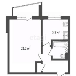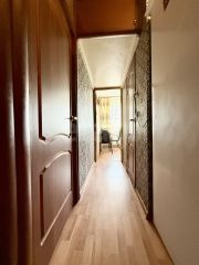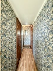 Ваша новая квартира обладает светлой и просторной комнатой площадью 21 кв. м, где на полу уложен качественный ламинат, а стены оформлены обоями. Потолок идеально выровнен и окрашен, создавая атмосферу уюта и комфорта.