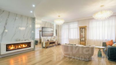 Квартира укомплектована мебелью и бытовой техникой. Продуманы различные сценарии освещения. Функциональная планировка включает кухню-гостиную с камином, 3 спальни, ванную комнату, 4 балкона и холл. Окна, ориентированные на три стороны света, открывают виды на улицу и благоустроенную территорию комплекса.