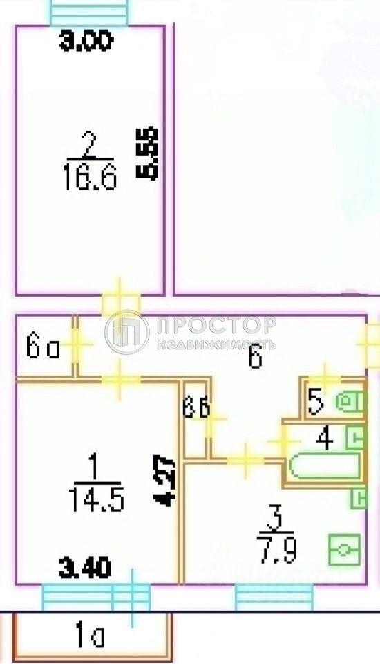 53,4 м²