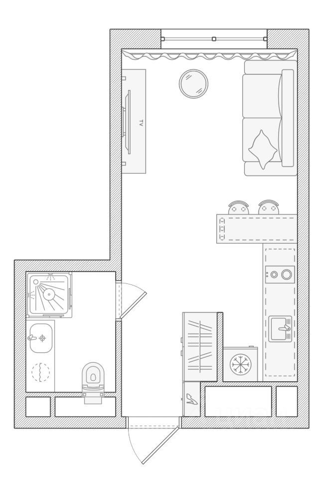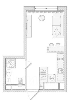 Площадь студии 21,9 кв м.