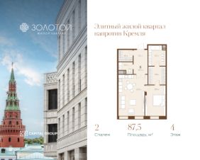 Светлая 2-комнатная квартира площадью 87,5 кв. м, расположенная на 4 этаже в новом жилом квартале "Золотой-2" от Capital Group - прямо напротив Кремля. Окна шикарной кухни-гостиной площадью 31,6 кв. м, выходят в сторону Репинского сквера. Зона светлой спальни площадью 16,1 кв. м объединена с собственной ванной и гардеробной, создавая приватную зону master beedroom. Квартира предлагается к продаже с отделкой.