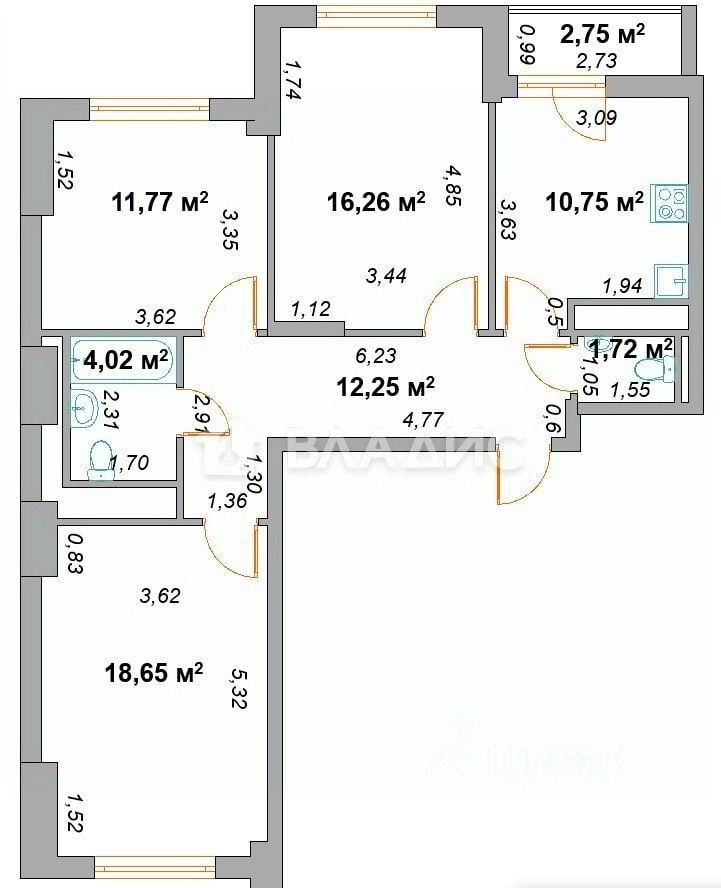 Общая площадь квартиры составляет 74,8 кв. м, жилая — 46,2 кв. м, площадь кухни — 10,8 кв. м. Просторные комнаты и удобная планировка создадут комфорт для всей семьи.
