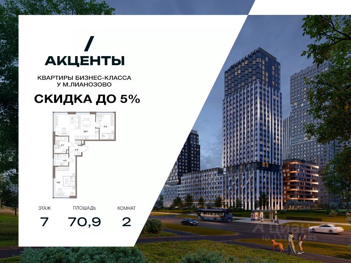 Жилой комплекс "Акценты" — это монолитный проект бизнес-лайт класса, расположенный в северной части Москвы, в районе Восточное Дегунино. Комплекс объединяет 19 жилых корпусов высотой от 7 до 30 этажей, возводимых на территории 11,7 гектара. В рамках проекта предусмотрены квартиры различной площади — от компактных студий до просторных трехкомнатных решений, с высотой потолков 2,85 м и вариантами отделки, включая чистовую отделку. Благодаря архитектуре бюро АПЕКС и панорамному остеклению, помещения наполняются естественным светом. Удачное расположение рядом с метро "Лианозово" и МЦД делает комплекс удобным как для жизни, так и для инвестиций.