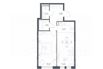Арт. 128946778 Предлагается 1-комнатная квартира комфорт-класса 49,54 кв.м в корпусе 22 на 12 этаже, в ЖК "Остафьево"