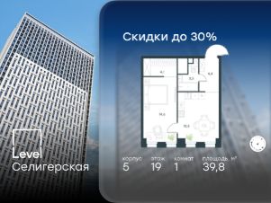 В жилом квартале, расположенном в южной части района Западное Дегунино, продаётся 1-комнатная квартира площадью 39.80 кв.м без отделки. Квартира расположена на 19 этаже 40-этажного корпуса 5 в жилом комплексе комфорт-класса Level Селигерская (компания Level Group/Левел групп).