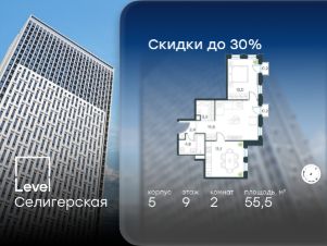 В жилом квартале, расположенном в южной части района Западное Дегунино, продаётся 2-комнатная квартира площадью 55.50 кв.м без отделки. Квартира расположена на 9 этаже 40-этажного корпуса 5 в жилом комплексе комфорт-класса Level Селигерская (компания Level Group/Левел групп).