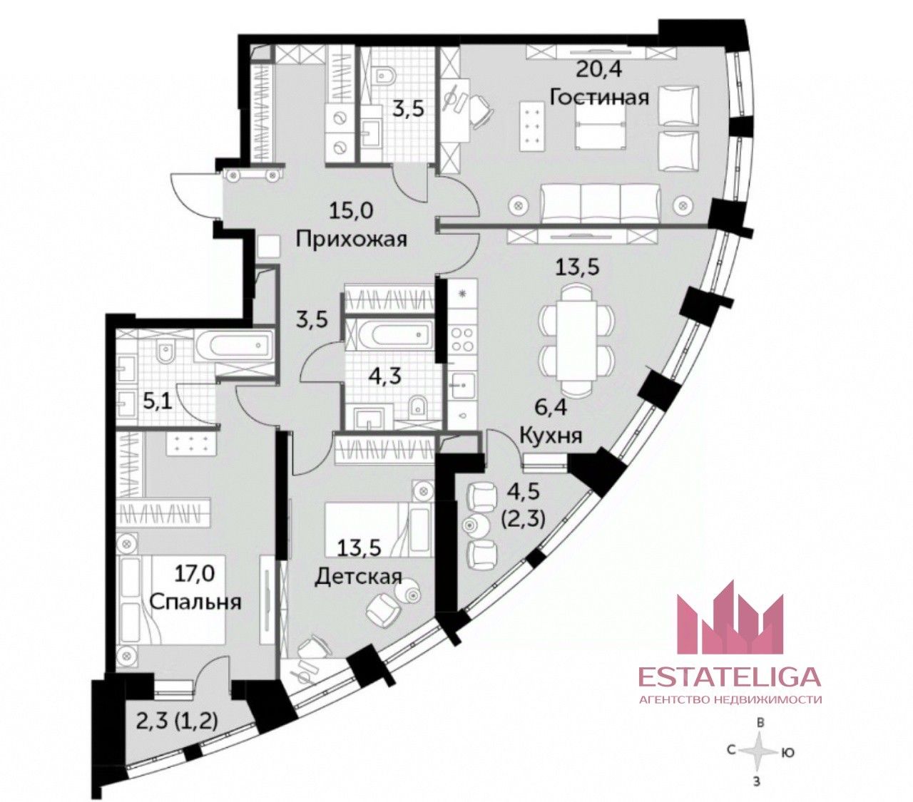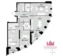 Id 60006. ЧЕТЫРЕХКОМНАТНАЯ В ЖК "SYDNEY CITY" ОТ ФСК!
