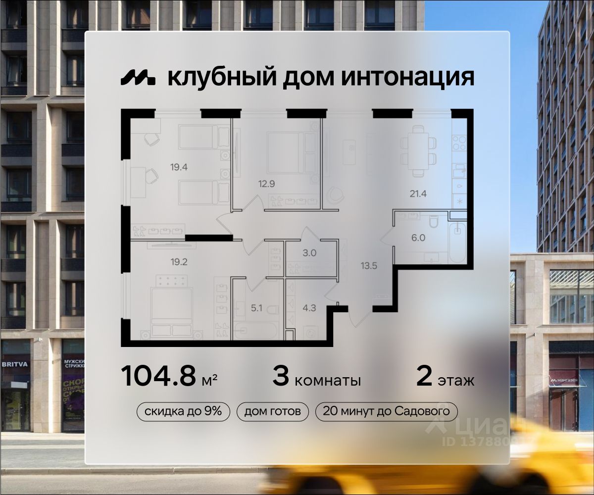В продаже 3-комнатная квартира в готовом клубном доме бизнес-класса "Интонация". Квартира с высокими потолками с мастер-спальней, просторной кухней и постирочной.