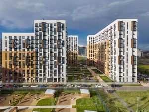 В квартале — монолитные дома комфортной высоты, от 10 этажей. Светлые фасады украшают кирпичные вставки в теплых природных оттенках.