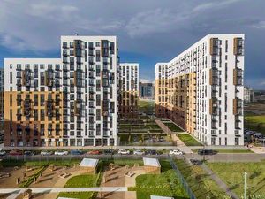 В квартале — монолитные дома комфортной высоты, от 10 этажей. Светлые фасады украшают кирпичные вставки в теплых природных оттенках.