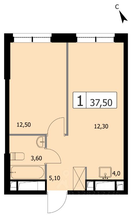 Просторная и светлая квартира площадью 37,5 кв. м. Продуманная планировка квартиры включает в себя отдельное расположение спальни от обеденно - гостиной зоны. Из окон гостиной открывается вид на Останкинскую башню, колесо обозрения и другие высотные