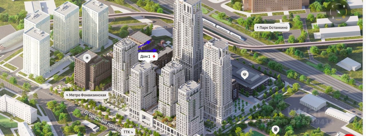 Удобная транспортная доступность — всего 5 минут до метро Фонвизинская и 3 километра до ТТК. Вокруг расположены парки, школы, детские сады и торговые центры, что делает жизнь комфортной.