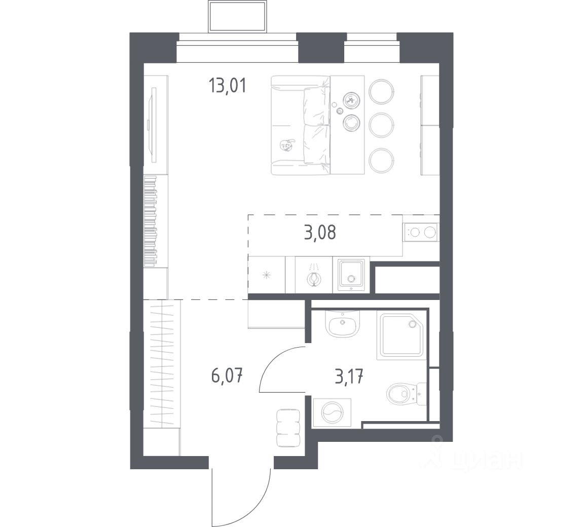 Строим кварталы для жизни с заботой о будущем. Предлагается студия комфорт-класса площадью 25,1 кв.м в корпусе 15 на 5-м этаже, в жилом комплексе "Алхимово".