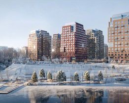 Камерный квартал в Новой Москве, на берегу Ивановского пруда. Одна из ключевых особенностей проекта — квартиры с панорамным видом на воду.