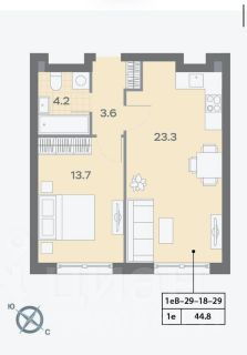 Плoщадь квартиры: 44,8 м²