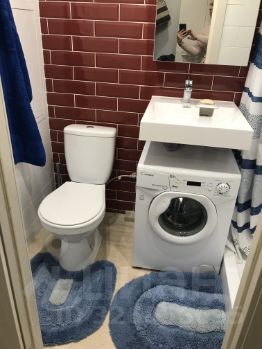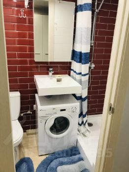 Санузен совмещен, в плитке до потолка, большой душевой поддон с полкой из плитки, стиральная машина под раковиной 3,5кг и короткой программой стирки.