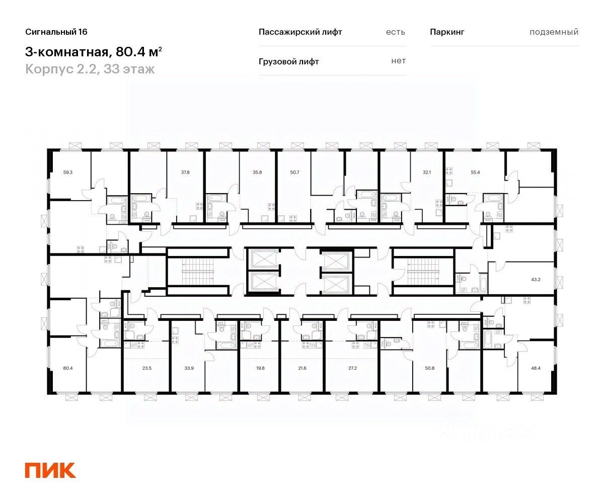 Продаётся 3-комн. квартира площадью 80,4 кв.м на 33 этаже 33 этажного дома (Корпус 2.2, Секция 4) проекта ПИК Сигнальный 16. Светлый просторный подъезд на уровне земли, функциональная планировка, большие окна, c отделкой.