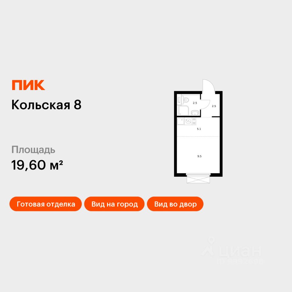 Продаётся квартира-студия площадью 19,6 кв.м на 33 этаже 33 этажного дома (Корпус 2.4, Секция 1) проекта ПИК Кольская 8. Светлый просторный подъезд на уровне земли, функциональная планировка, большие окна, c отделкой.
