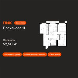 Продаётся 2-комн. квартира площадью 52,5 кв.м на 16 этаже 31 этажного дома (Корпус 1.5, Секция 5) проекта ПИК Плеханова 11. Светлый просторный подъезд на уровне земли, функциональная планировка, большие окна, c отделкой.