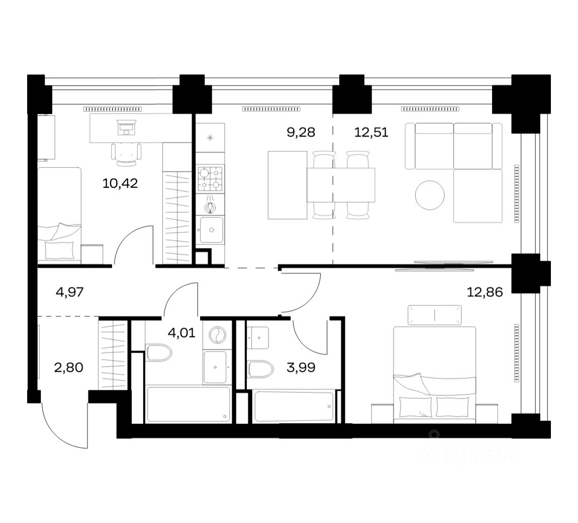 Строим кварталы для жизни с заботой о будущем. Предлагается 2-комнатная квартира премиум-класса площадью 60,84 кв.м в корпусе 3 на 22-м этаже, в жилом комплексе "NOVA".