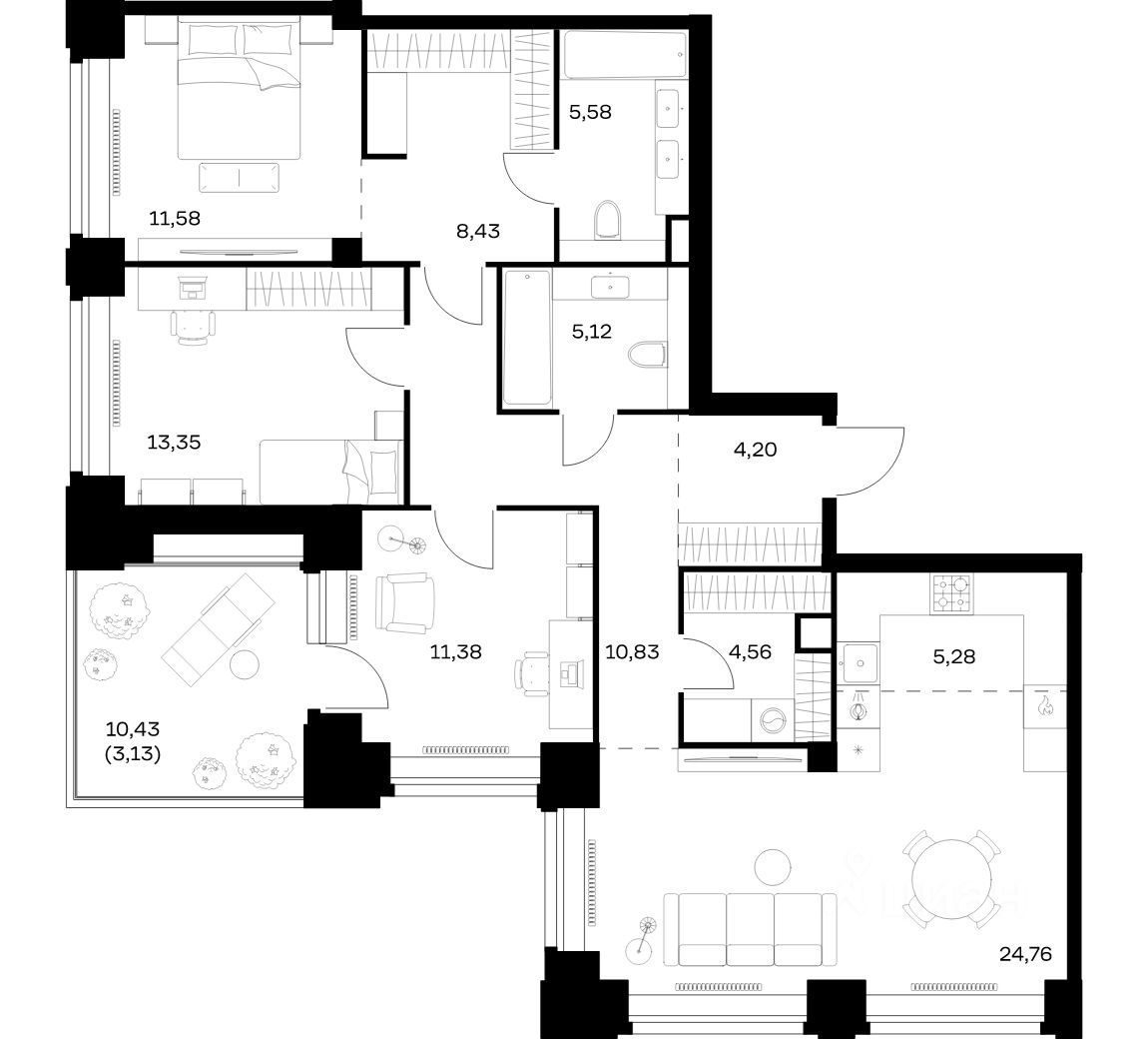 Строим кварталы для жизни с заботой о будущем. Предлагается 3-комнатная квартира премиум-класса площадью 108,2 кв.м в корпусе 3 на 37-м этаже, в жилом комплексе "NOVA".