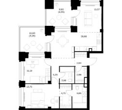 Строим кварталы для жизни с заботой о будущем. Предлагается 2-комнатная квартира премиум-класса площадью 88,24 кв.м в корпусе 3 на 27-м этаже, в жилом комплексе "NOVA".