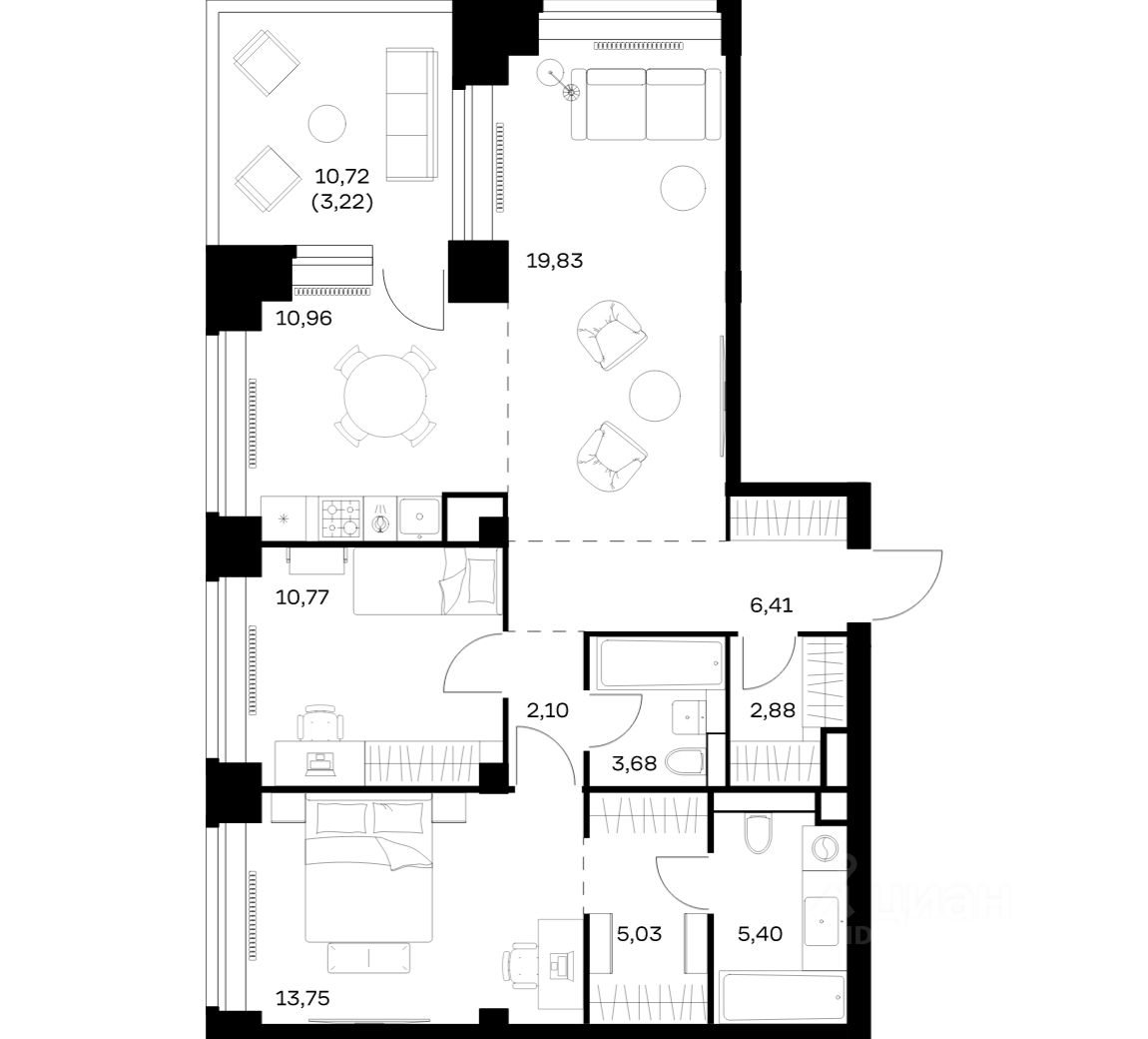 Строим кварталы для жизни с заботой о будущем. Предлагается 2-комнатная квартира премиум-класса площадью 84,03 кв.м в корпусе 1 на 26-м этаже, в жилом комплексе "NOVA".