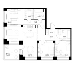 Строим кварталы для жизни с заботой о будущем. Предлагается 3-комнатная квартира премиум-класса площадью 99,67 кв.м в корпусе 1 на 28-м этаже, в жилом комплексе "НОВА".