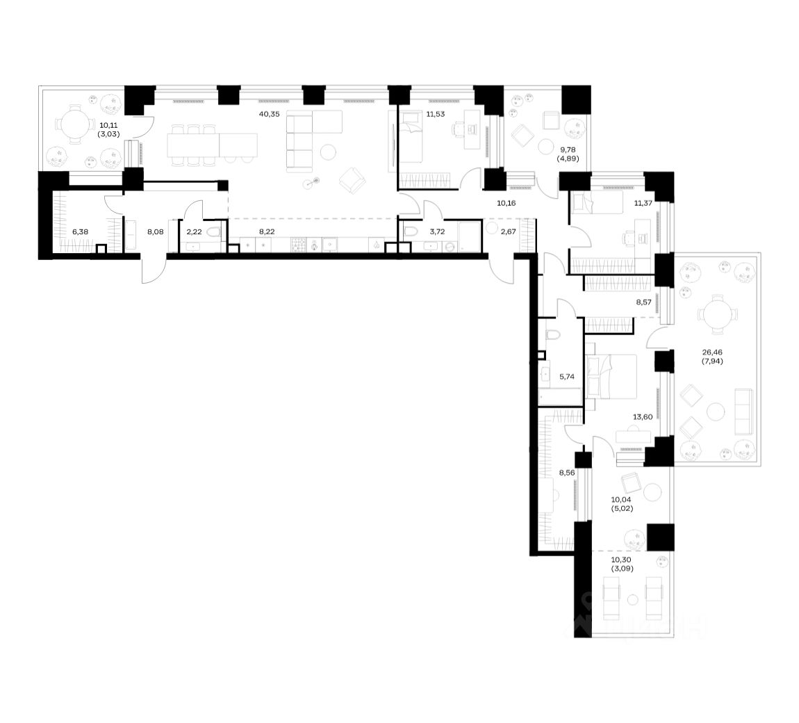 Строим кварталы для жизни с заботой о будущем. Предлагается 3-комнатная квартира премиум-класса площадью 165,14 кв.м в корпусе 1 на 31-м этаже, в жилом комплексе "NOVA".