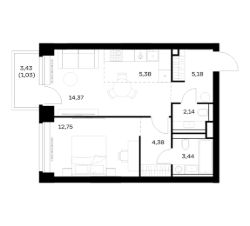 Строим кварталы для жизни с заботой о будущем. Предлагается 1-комнатная квартира премиум-класса площадью 48,67 кв.м в корпусе 1 на 4-м этаже, в жилом комплексе "NOVA".