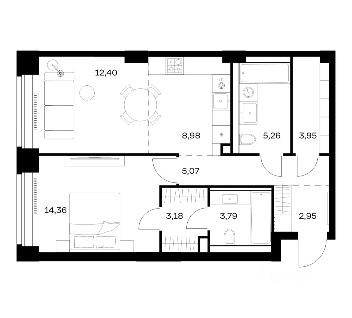 Строим кварталы для жизни с заботой о будущем. Предлагается 1-комнатная квартира премиум-класса площадью 59,94 кв.м в корпусе 1 на 4-м этаже, в жилом комплексе "NOVA".