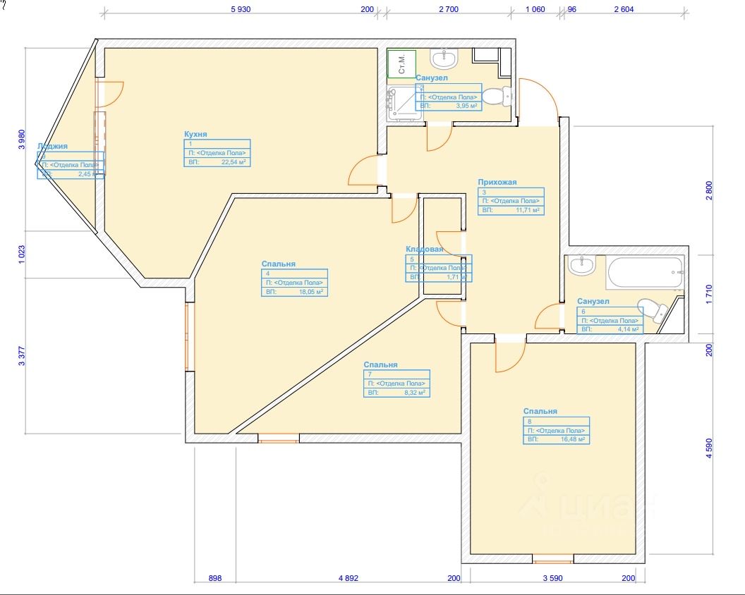 Общая площадь 88 м², включая 3 спальни площадью 9, 16 и 18 м², а так же просторную кухню-гостиную 22 м², которая станет идеальным местом для отдыха и общения. В вашем распоряжении также два удобных санузла (один с душевой кабиной, второй с ванной) и гардеробная комната, что значительно упрощает организацию пространства. Большой балкон — это отличное место для утреннего кофе или вечерних посиделок.