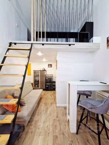 Студия с мебелью и техникой.
