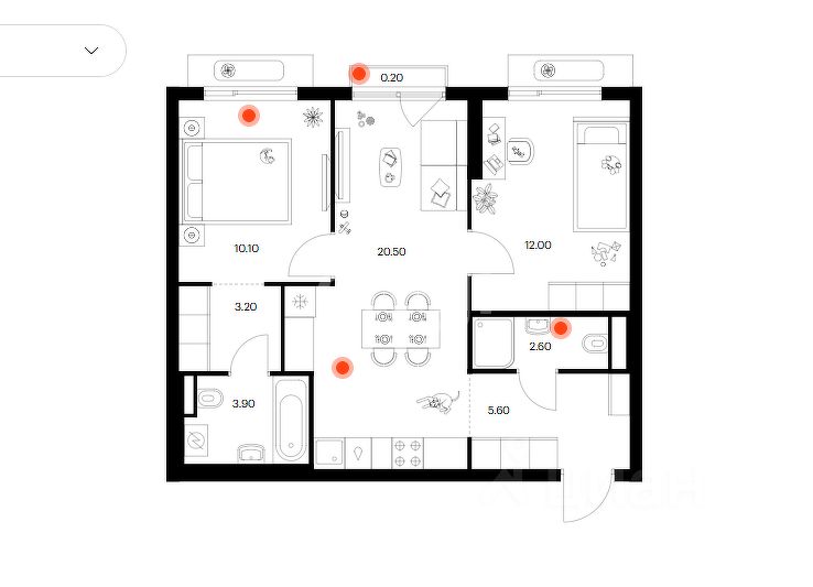 Продуманная планировка: 2 санузла, мастер спальня, кухня-гостиная, открытый балкон.
