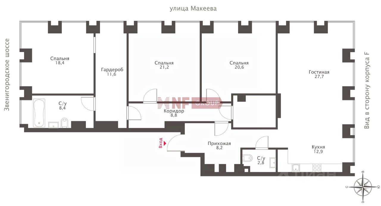 Окна выходят на 3 стороны света: в благоустроенный двор, в сторону Звенигородского шоссе и на улицу Макеева.